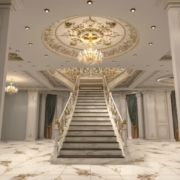 - گچبری سقف: که شامل طرحهای هندسی، دایرهای و خطوط منحنی است. این طرحها میتوانند با نورپردازیهای مخفی تلفیق شده و جلوهای منحصر به فرد ایجاد کنند.